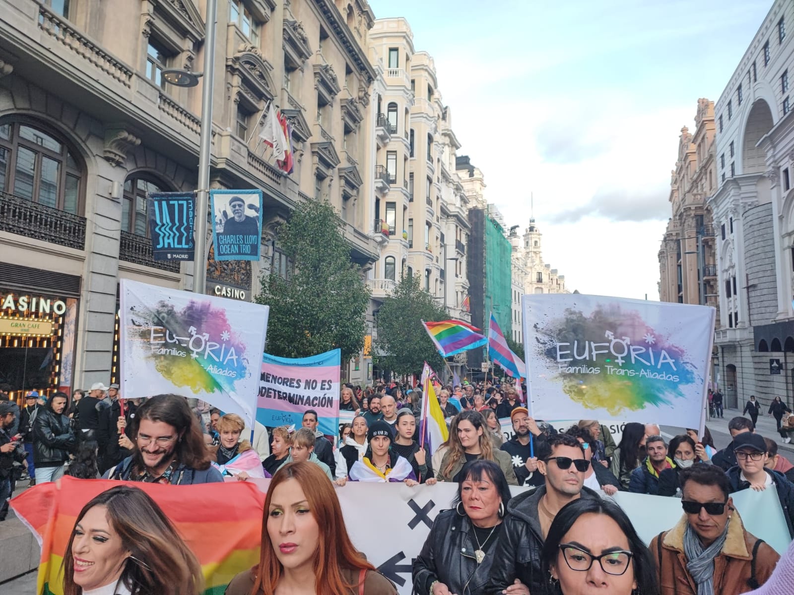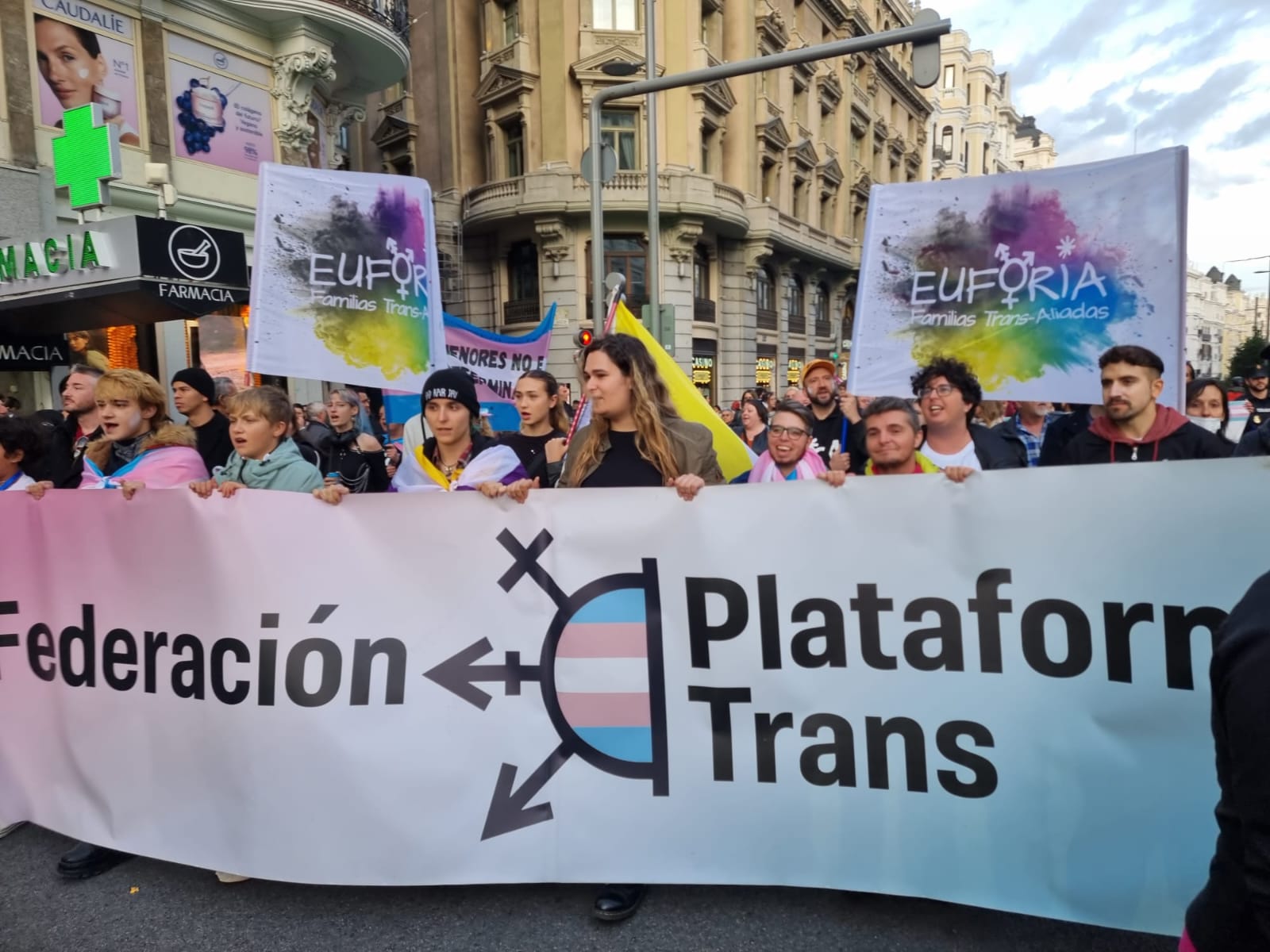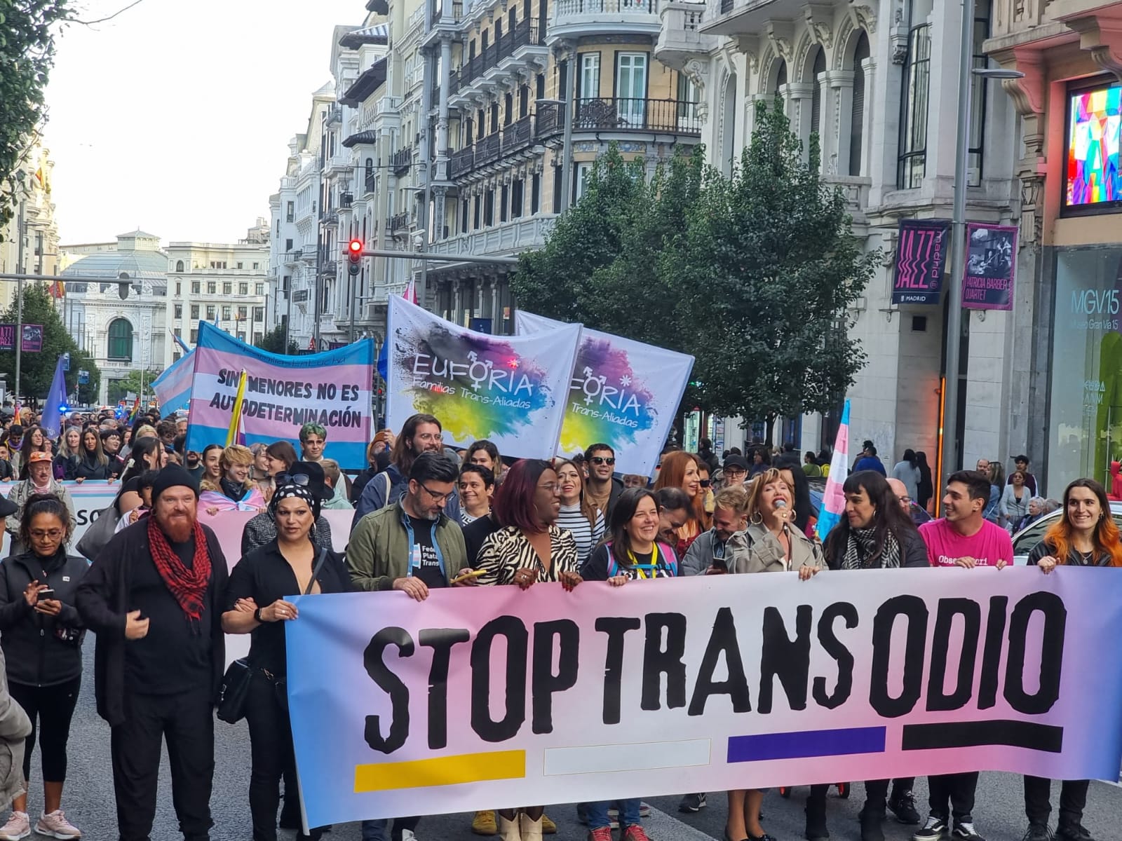 En el Estado Español, la Ley Trans, ha costado cerca de 8 años de lucha en las calles, los despachos y las instituciones, para que sea una realidad, y no completa. hoy en esta manifestación del Octubre Trans, defendemos el derecho de todas las infancias trans a ver los indicadores del nombre y sexo cambiados en sus DNI, con un procedimiento administrativo sencillo, al amparo de la Sentencia del Tribunal Constitucional de 2019, exigimos el reconocimiento legal de las personas trans NB de todas las edades y exhortamos a que la documentación administrativa que expide el estado español para las personas migrantes recoja su nombre social y su identidad sexual libremente manifestada, y que se haga posible desde un trámite sencillo, gratuito y sin requisitos médicos, ni ningún informe.