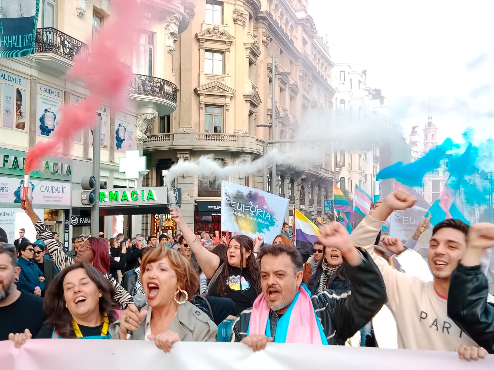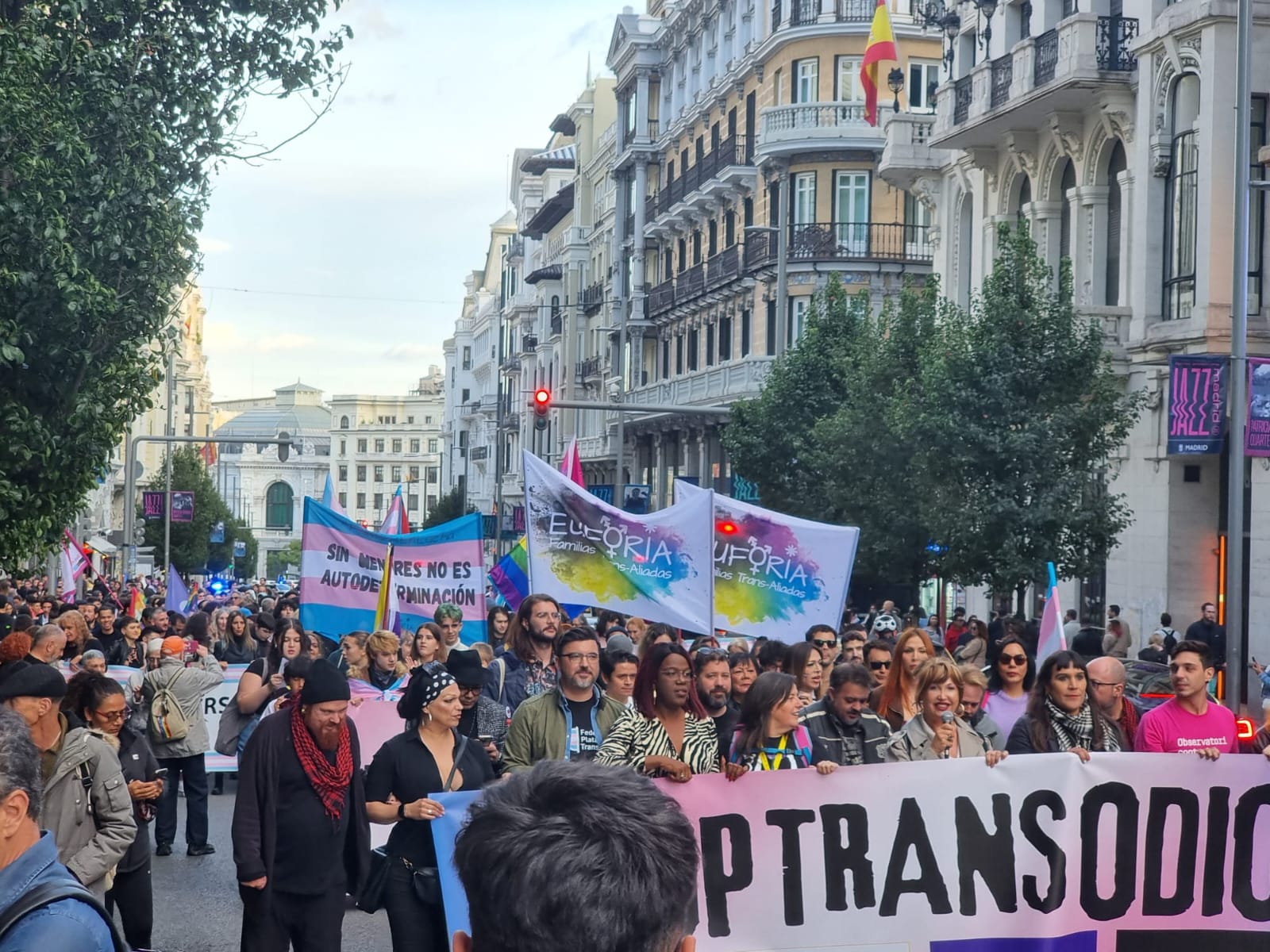 Alrededor de 1.500 personas marcharon este pasado sábado 21 por la Gran Vía madrileña contra los Delitos de Odio hacia las personas Trans y LGTBI 💪🏳️⚧️
