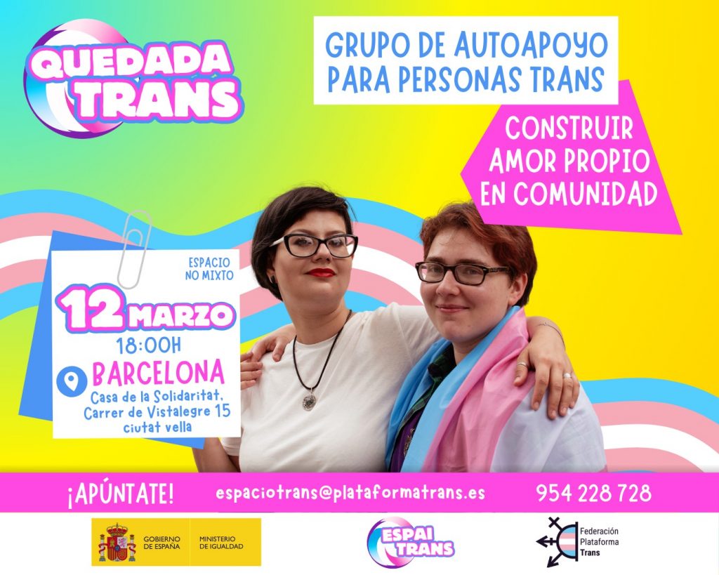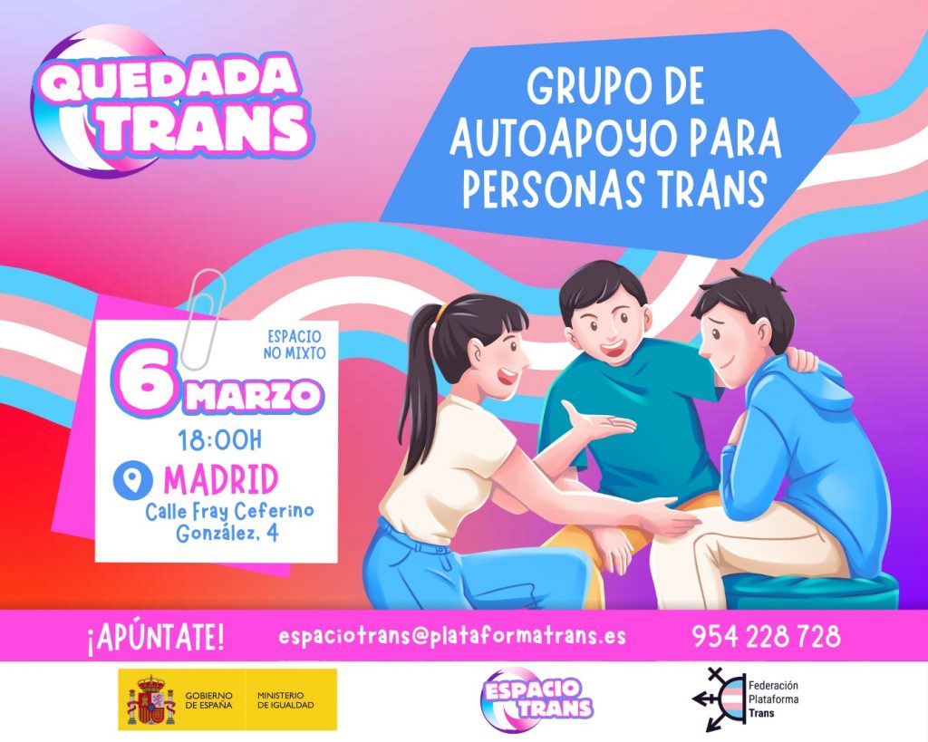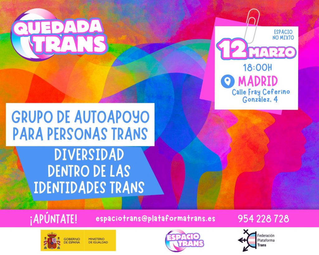 Actividades de Marzo del Espacio Trans  Desde @plataformatrans seguimos construyendo espacios seguros para fomentar tu autoestima y empoderamiento, así como otras actividades para conocer personas como tú y estrechar lazos entre iguales.  ¡Apunta las fechas y no te pierdas nuestrans actividades!