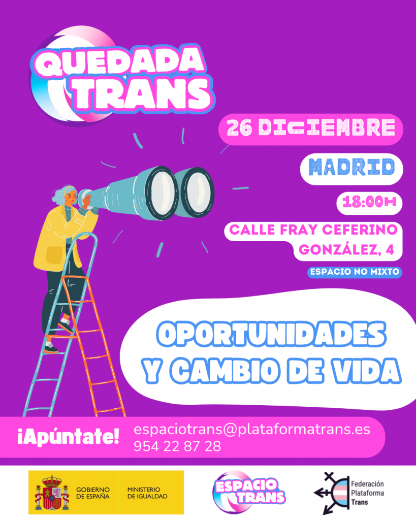 Desde Federación Plataforma Trans seguimos construyendo espacios seguros para fomentar tu autoestima y empoderamiento, así como para estrechar lazos entre iguales.